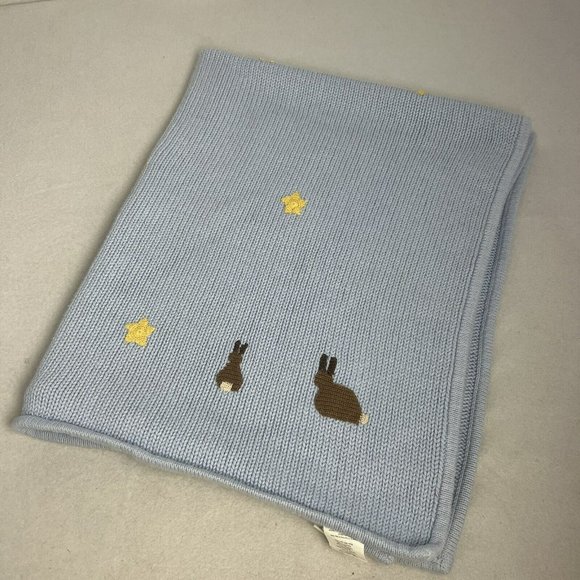 Pottery Barn Kids Bedding Pottery Barn Kids Baby Blanket Blue Bunnies Stars Sweater Knit Pbk Rabbit Poshmark